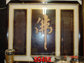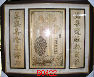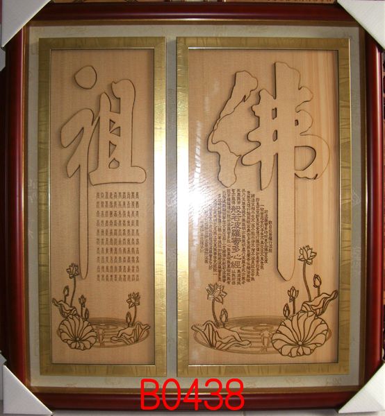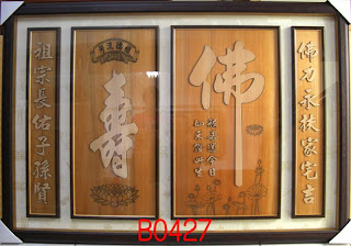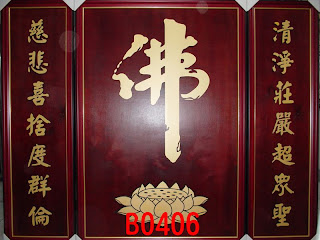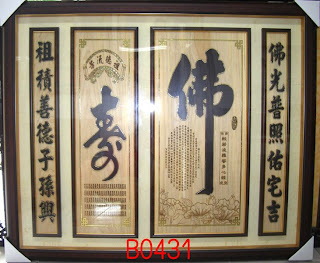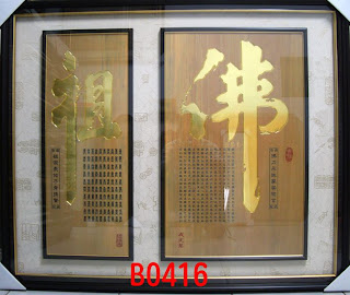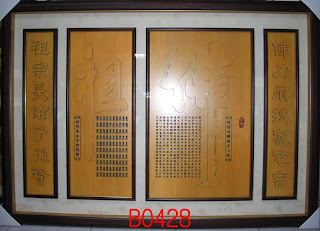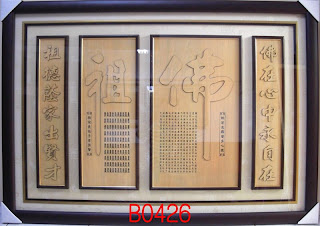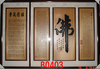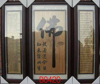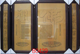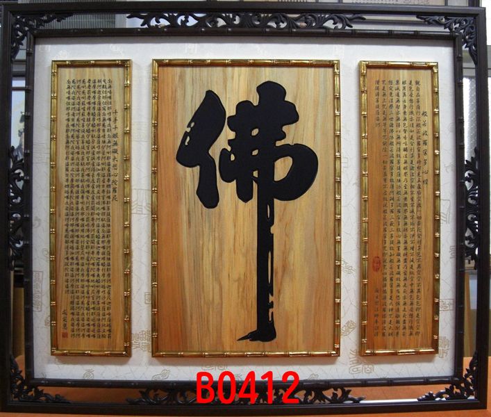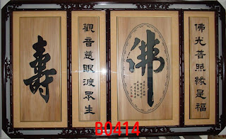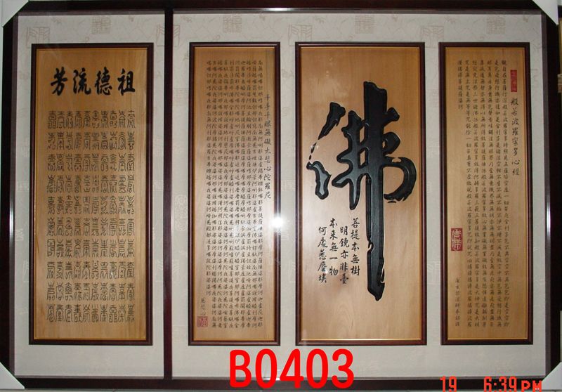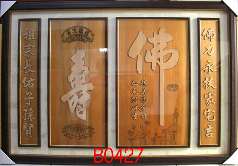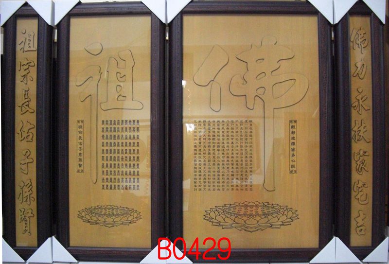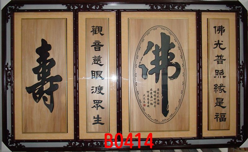 神桌佛像佛聯 B0403 大佛字 菩提 心經.大悲咒聯 百壽(祖德流芳)四合一 350*510本色陰雕黑字