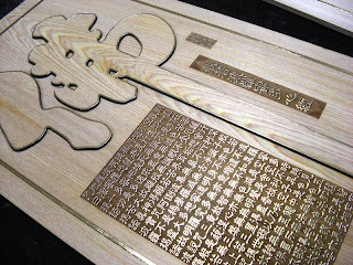 神桌佛像佛聯 B0405 大佛字(陽雕)心經.大悲咒(陽雕)三合一 350*420 胡桃木底原木字