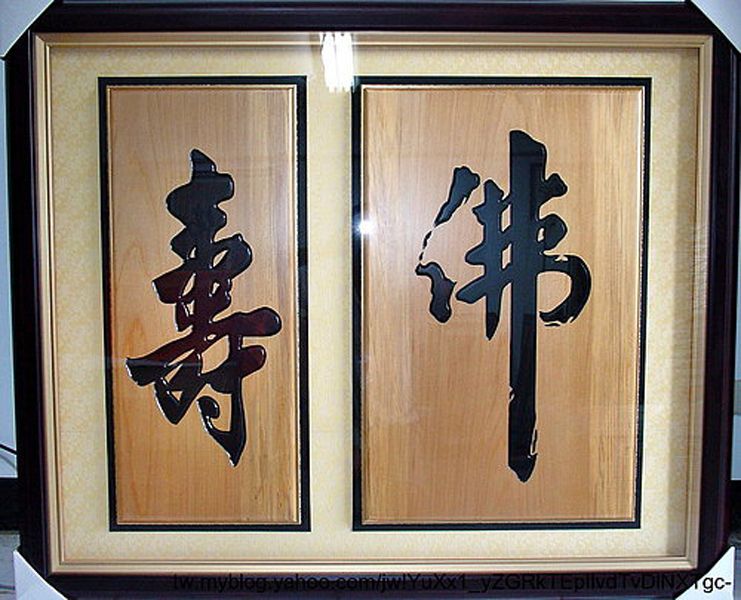 神桌佛像佛聯 B0404 大佛字 壽字 二合一 350*420 原木底陰雕黑字