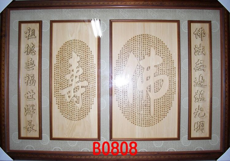 08.神桌佛像佛聯-心經佛字 往生咒壽字(陽雕金字)