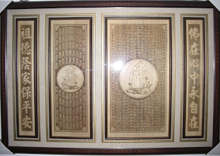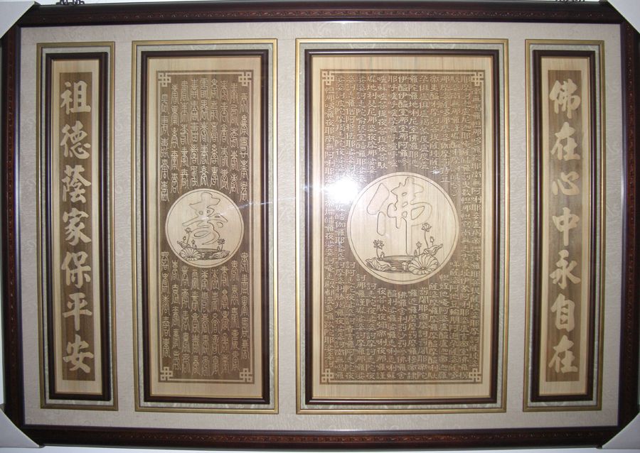 14.神桌佛像佛聯-雙浮雕大悲咒圓佛字+百壽圓壽字