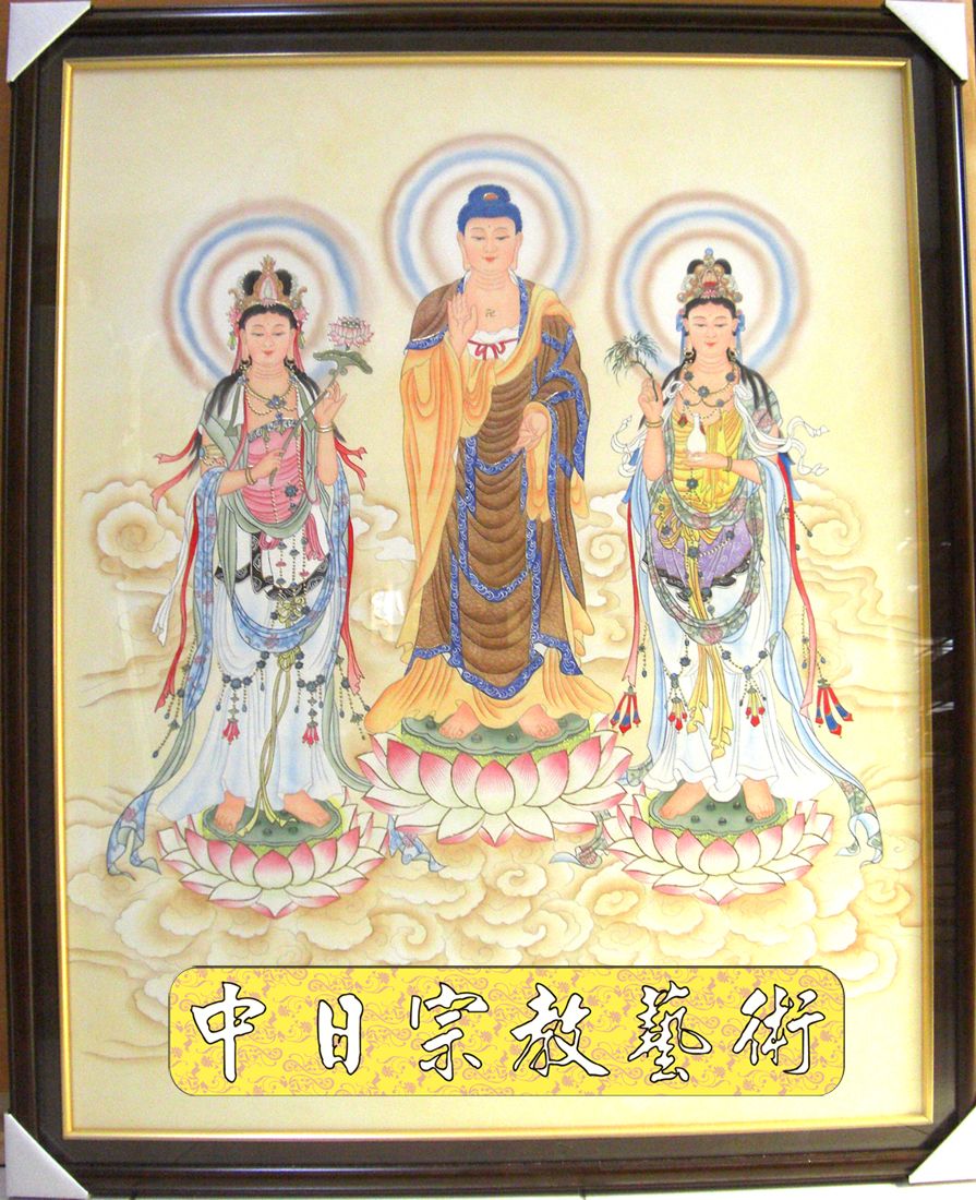 C1602西方三聖(三合一)(神桌佛桌供桌廟桌神明櫥佛櫥神像佛像佛祖聯佛聯神明彩聯對佛(像)掛公媽聯祖先聯公媽牌祖先牌位)