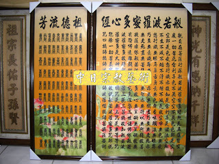 C1902綢布蓮花心經+百壽(神桌佛桌供桌廟桌神明櫥佛櫥神像佛像佛祖聯佛聯神明彩聯對佛(像)掛公媽聯祖先聯公媽牌祖先牌位)